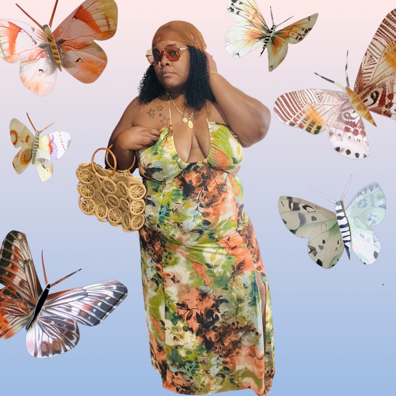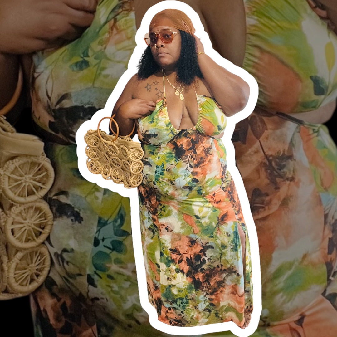 - Fit: Maxi length – halter string neck with cutout back – high side splits – super stretchy, curve-hugging fabric designed for plus-size confidence